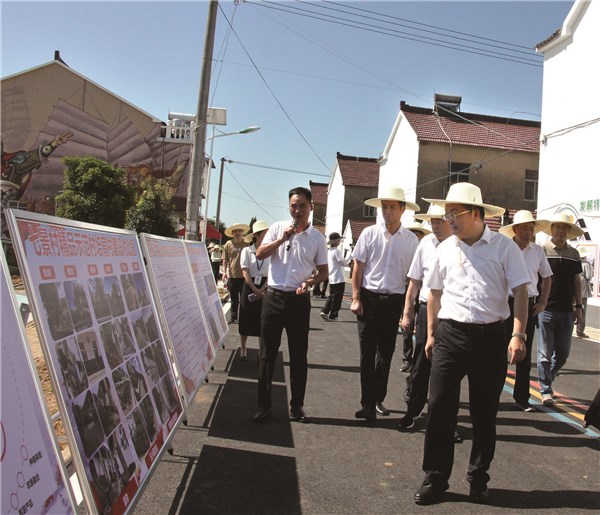 俞志剛、王宏崢率與會人員在洪林鎮(zhèn)七景村觀摩和美鄉(xiāng)村建設(shè)情況